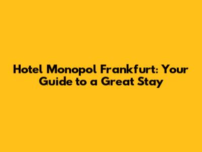 Discovering Hotel Monopol Frankfurt Germany: Your Perfect City Escape