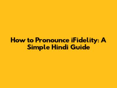 How To Pronounce IFidelity: A Simple Hindi Guide