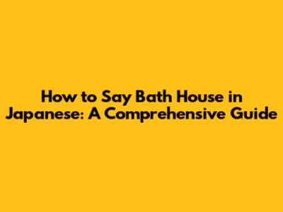 How To Say Bath House In Japanese: A Comprehensive Guide