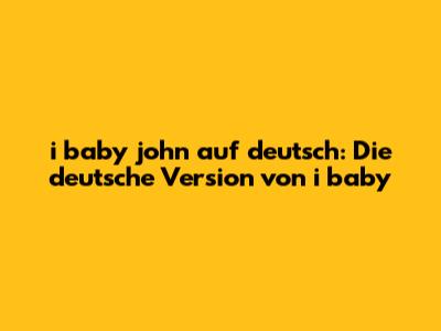 Warum "i baby john auf deutsch" ein Muss ist: Mehr als nur ein Trend