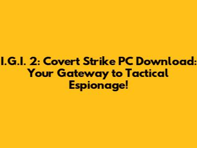 Alright guys, let's dive into something truly epic for all you PC gamers out there who love a good dose of tactical stealth and thrilling action: I.G.I. 2: Covert Strike download for PC. If you're new to the series or a seasoned veteran looking to relive the glory days, this is your definitive guide. We're talking about a game that, even years after its release, still holds a special place in the hearts of many. It’s a game that demands precision, strategic thinking, and a whole lot of patience. Forget run-and-gun madness; this is about outsmarting your enemies, utilizing the environment, and executing your missions with surgical accuracy. So, buckle up, because we're about to take a deep dive into what makes I.G.I. 2: Covert Strike such a timeless classic and how you can get your hands on it to experience the tactical espionage firsthand.