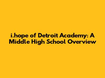 Hey guys! Let's dive into the world of i.hope of Detroit Academy Middle High School! If you're looking for information on this school, you've come to the right place. We'll explore everything from its mission and academic programs to its extracurricular activities and overall environment. This article will serve as your go-to guide, providing insights into what makes i.hope of Detroit Academy tick and how it might be a good fit for you or your child. Get ready to learn about this awesome school and what it offers its students!