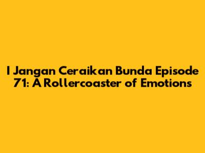 Hey guys! Let's dive deep into the emotional whirlwind that was I Jangan Ceraikan Bunda Episode 71. This episode, as always, packed a punch, delivering a rollercoaster of drama, heartbreak, and maybe even a glimmer of hope. We'll break down the key moments, analyze the character's decisions, and discuss what it all means for the future of our beloved characters. Buckle up, because it's going to be a bumpy ride! I'll go through the most critical parts of the episode, discussing the plot's twists and turns and how they affect the story's main components. We'll delve into the character's motivations, examining their behaviors and relationships. The goal is to provide a comprehensive recap and review, allowing us to appreciate the episode's complexity and impact better.