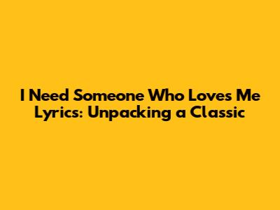 I Need Someone Who Loves Me Lyrics: A Deep Dive