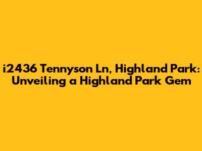 Hey there, real estate enthusiasts! Let's dive into the details of i2436 Tennyson Ln in Highland Park. This address isn't just a collection of numbers and letters; it's a potential gateway to your dream home. Highland Park, as many of you know, is a seriously desirable location, and any property here is worth a closer look. So, buckle up, and let's explore what makes this particular spot so special. We'll be looking at everything from the general appeal of the area to what kind of house you might find at this address and why it might be the perfect place for you and your family. If you're on the hunt for a new home, this could be the start of an exciting journey. And even if you're just a curious observer, stick around; you might learn something new about the world of real estate and the charming suburb of Highland Park.