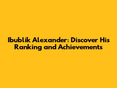 Ibublik Alexander: Discover His Ranking And Achievements