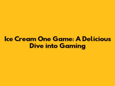 Ice Cream One Game: A Delicious Dive Into Gaming