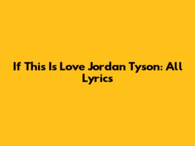 If This Is Love Jordan Tyson: All Lyrics