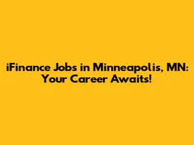 IFinance Jobs In Minneapolis, MN: Your Career Awaits!