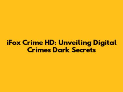 IFox Crime HD: Unveiling Digital Crime's Dark Secrets
