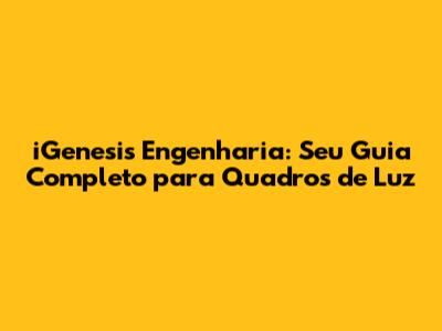 IGenesis Engenharia: Seu Guia Completo Para Quadros De Luz