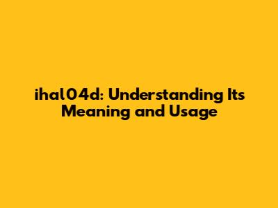 Ihal04d: Understanding Its Meaning And Usage