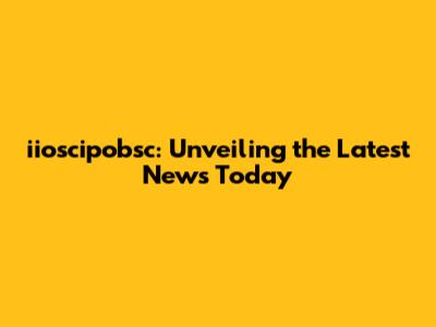 Iioscipobsc: The Latest Updates & Insights