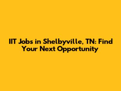 IIT Jobs In Shelbyville, TN: Find Your Next Opportunity