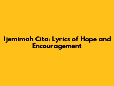 Ijemimah Cita: Lyrics Of Hope And Encouragement