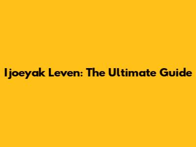 Ijoeyak Leven: The Ultimate Guide