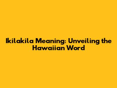 Ikilakila Meaning: Unveiling The Hawaiian Word