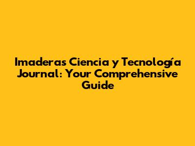Imaderas Ciencia Y Tecnología Journal: Your Guide