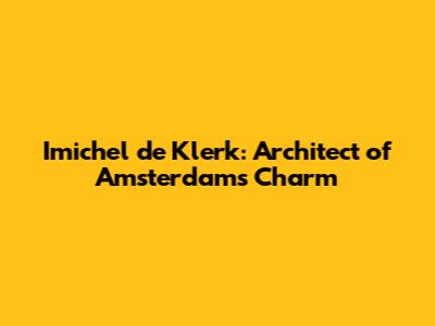 Imichel De Klerk: Architect Of Amsterdam's Charm