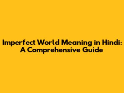 Imperfect World: Understanding The Meaning In Hindi