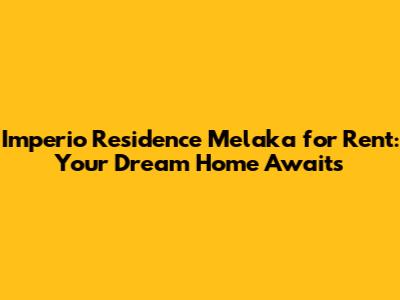 Hey there, future residents! Looking for a sweet pad in the historic city of Melaka? You've stumbled upon the right place! We're diving deep into Imperio Residence Melaka for rent, exploring everything from the cool amenities to the nitty-gritty of securing your new home. So, grab a coffee (or your beverage of choice), get comfy, and let's unravel the secrets of renting at Imperio Residence. This guide is designed to be your one-stop shop, making your search for Imperio Residence Melaka for rent a breeze. We'll cover everything from the types of units available, the rental process, and the awesome lifestyle you can expect. Get ready to fall in love with your potential new home!