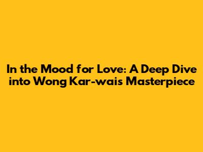 In The Mood For Love: A Deep Dive Into Wong Kar-wai's Masterpiece