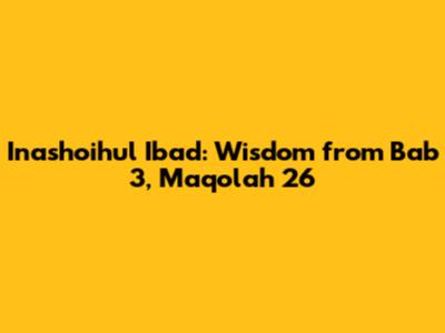 Let's dive into the profound insights found in Inashoihul Ibad, specifically within Bab 3, Maqolah 26. This section offers invaluable guidance on navigating life with wisdom, integrity, and a deep connection to our spiritual well-being. We'll break down the key themes and explore how these teachings can be applied in our daily lives to foster personal growth and a stronger sense of purpose. Guys, get ready for some awesome reflections!