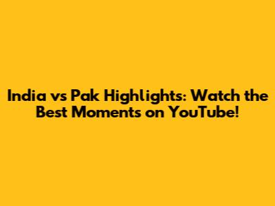 India Vs Pak Highlights: Watch The Best Moments On YouTube!
