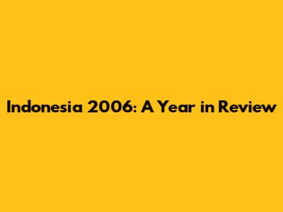 Indonesia 2006: A Year In Review