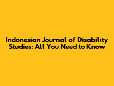 Indonesian Journal Of Disability Studies: All You Need To Know