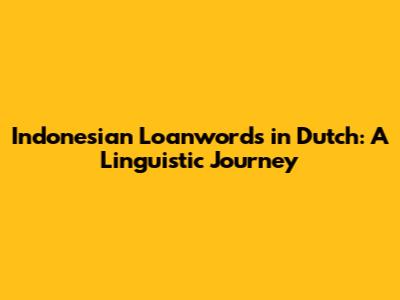 Indonesian Loanwords In Dutch: A Linguistic Journey