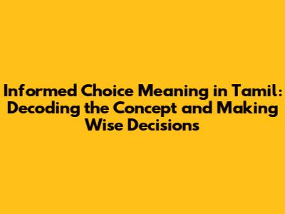 Decoding the Tamil Meaning of "Informed Choice"