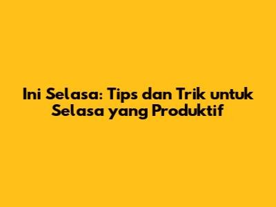 Ini Selasa: Tips Dan Trik Untuk Selasa Yang Produktif