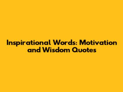 Inspirational Words: Motivation And Wisdom Quotes