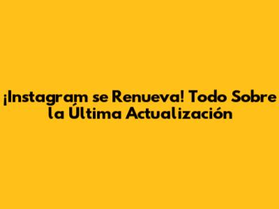 ¡Instagram Se Renueva! Todo Sobre La Última Actualización