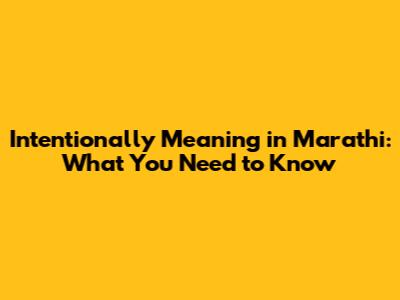 Intentionally Meaning In Marathi: What You Need To Know