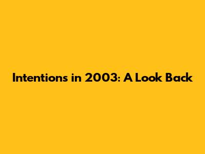 Intentions In 2003: A Look Back