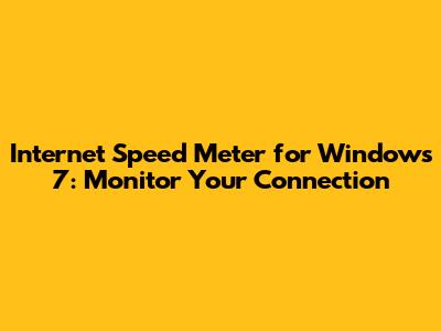 Internet Speed Meter For Windows 7: Monitor Your Connection