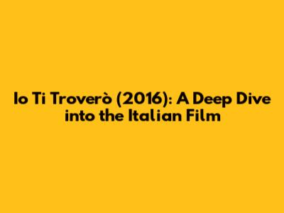 Io Ti Troverò (2016): A Deep Dive Into The Italian Film