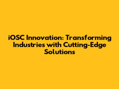 IOSC Innovation: Transforming Industries With Cutting-Edge Solutions