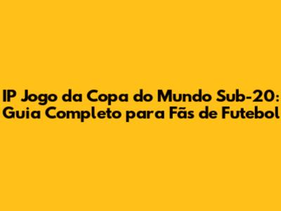 IP Jogo Da Copa Do Mundo Sub-20: Tudo O Que Você Precisa Saber