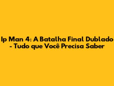 Ip Man 4: A Batalha Final Dublado - Tudo Que Você Precisa Saber