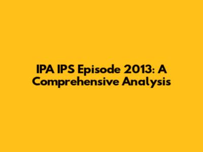 IPA IPS Episode 2013: Deep Dive & Analysis