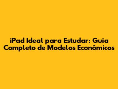 IPad Ideal Para Estudar: Guia Completo De Modelos Econômicos
