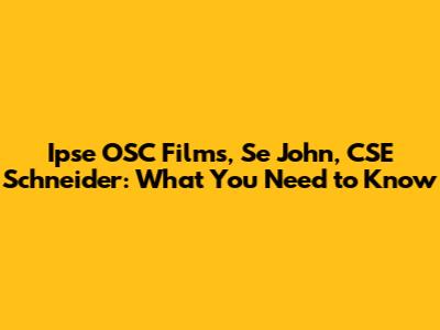 Ipse OSC Films, Se John, CSE Schneider: What You Need To Know