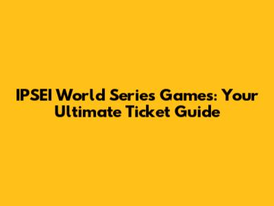 IPSEI World Series Games: Your Ultimate Ticket Guide