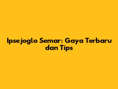 Ipsejoglo Semar: Gaya Terbaru Dan Tips