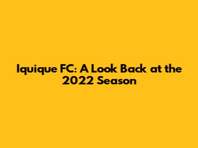 Iquique FC: A Look Back At The 2022 Season