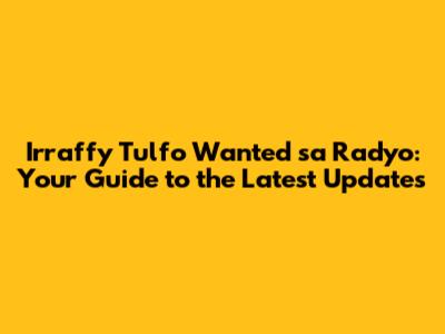 Hey everyone! Are you keeping up with the buzz around Iraffy Tulfo's “Wanted sa Radyo”? It's a real powerhouse of a program, isn't it? If you're anything like me, you're probably always on the lookout for the newest happenings, the juiciest stories, and the most recent cases that the team tackles. This article is your go-to guide for all things "Wanted sa Radyo," providing you with the latest updates, ensuring you don't miss a beat. We'll dive into what makes the show tick, the impact it has on the community, and where you can catch all the action. So, buckle up, grab your coffee, and let's get started on exploring the world of Irraffy Tulfo and his team!