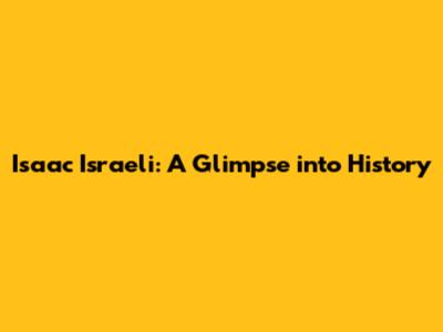 Isaac Israeli: A Glimpse Into History